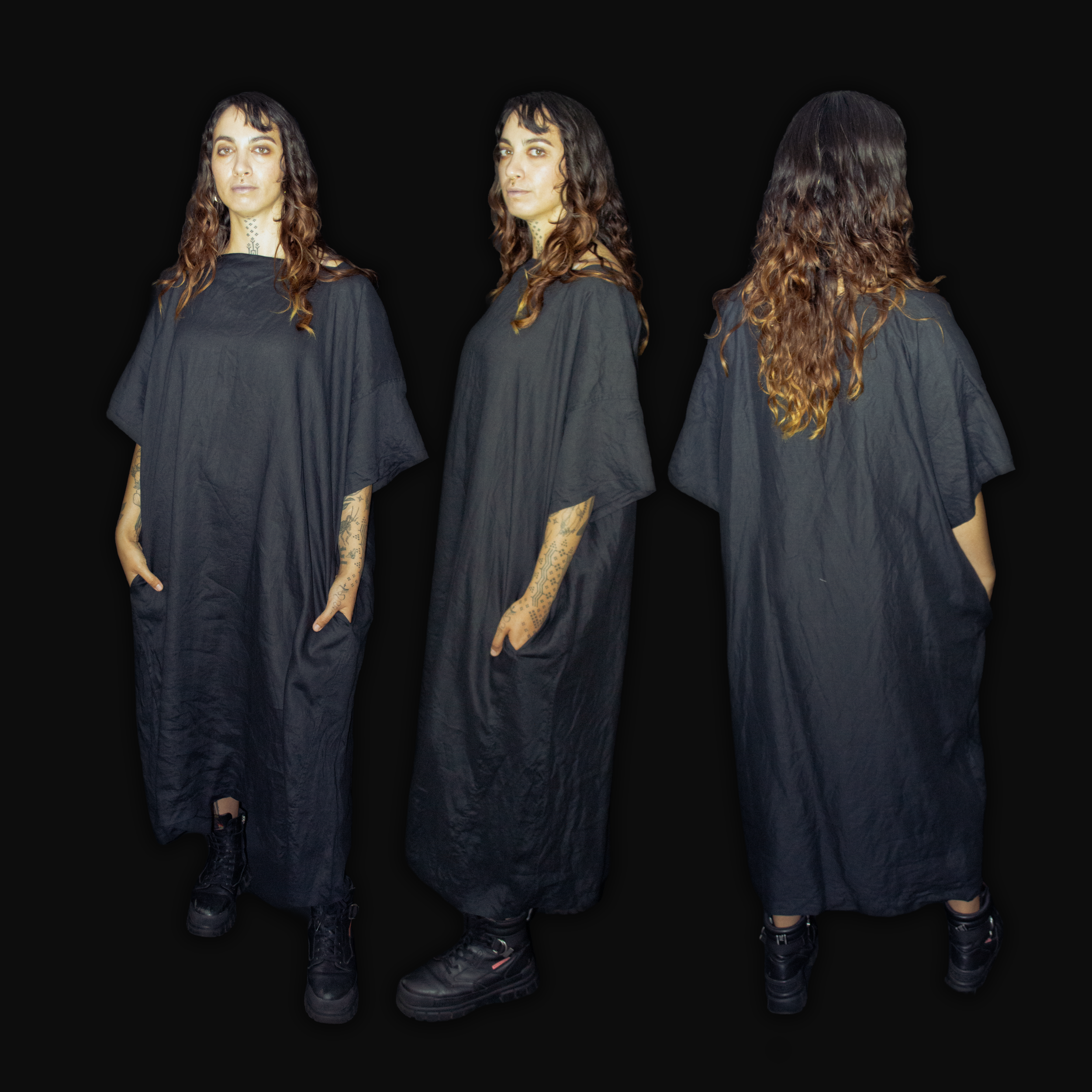 A staple piece in a wardrobe the Tunic Dress is versatile and can be worn in many settings. This comfortable piece is ideal for lounging or can be dressed up easily for more formal occasions.